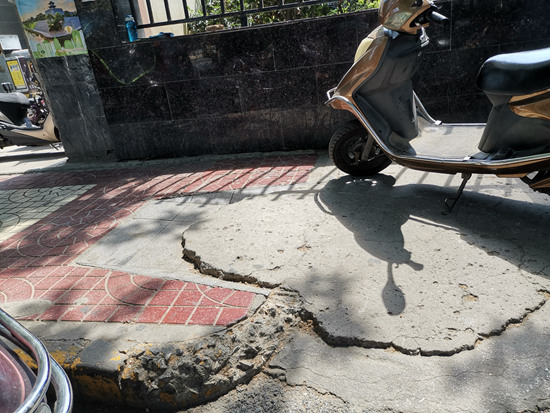 魏鹏刚调研西安道路无障碍设施发现的情况:有的坡道断裂,或干脆无坡道。受访者供图