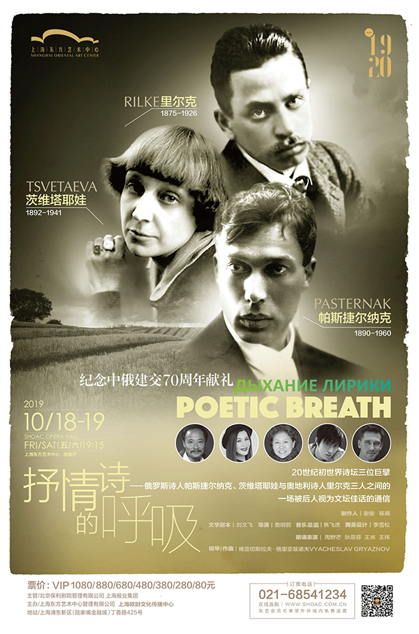 10月18日-19日,上海东方艺术中心,在音乐演诵剧《抒情诗的呼吸》里,演员周野芒、狄菲菲、王玮将把这段书信往来复现于舞台上。