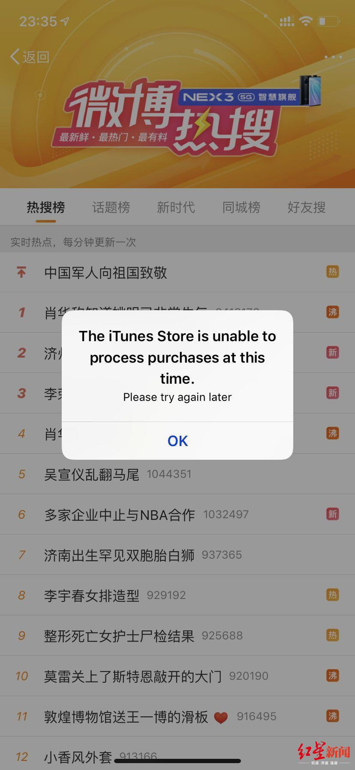 10月9日上午,红星新闻记者致电苹果客服电话,相关技术客服告诉记者,目前无法判断是用户的“误操作”或是系统问题,“但如果是显示无法完成购买的话,首先要看是否和别人共享过Apple ID账号和密码”。