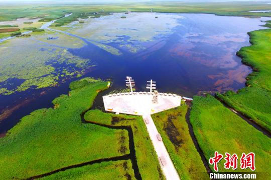 凌空鸟瞰博湖县博斯腾湖莲海世界景区。 年磊 摄