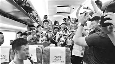 原标题:高铁上一曲“钢铁洪流”告别阅兵联合军乐团战友