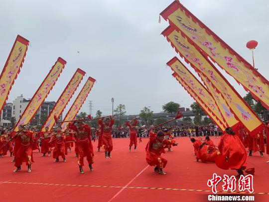 中新网金华10月9日电(记者 奚金燕)9日,浙江永康方岩锣鼓喧天,人山人海,这里正在举办“民间民俗·多彩浙江”优秀传统文化系列活动——2019年永康方岩庙会。作为江南地区颇具影响力的民间庙会,方岩庙会已有近千年的历史,现场九狮图、打罗汉、十八蝴蝶、滚叉舞等非遗民俗轮番上演,场面盛大,吸睛十足。
