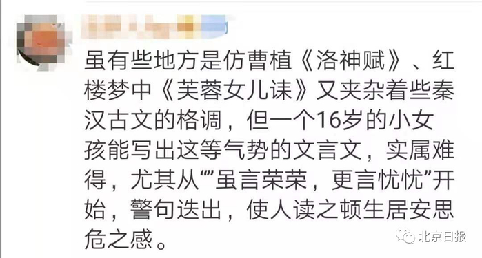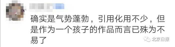 不少网友看后,纷纷对这位年仅16岁的作者竖起了大拇指。有人表示,虽然作品引用化用不少,但小小年纪能写出如此气势磅礴的文章已实属难得。