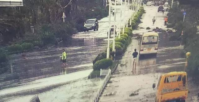 珠海的暴雨天不少,暴雨天行车最怕积水。路面水浸一是容易熄火,二来也不容易看清路面标线,导致产生违法行为,交警都会酌情撤销罚单。▼