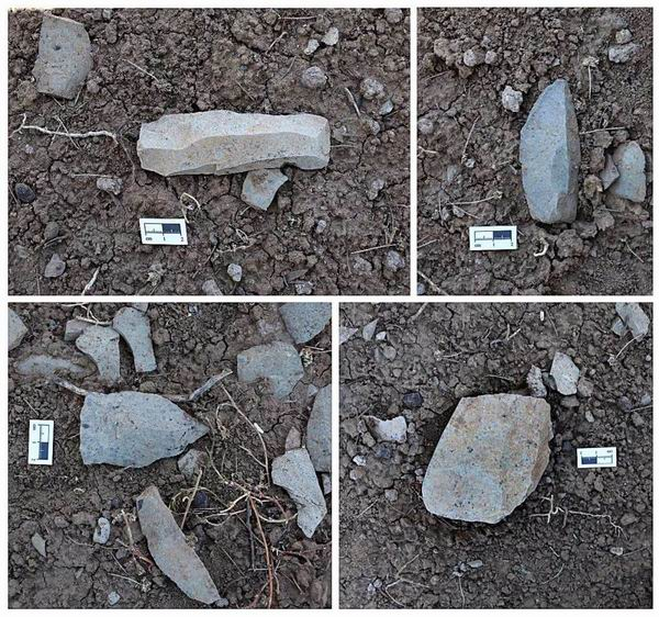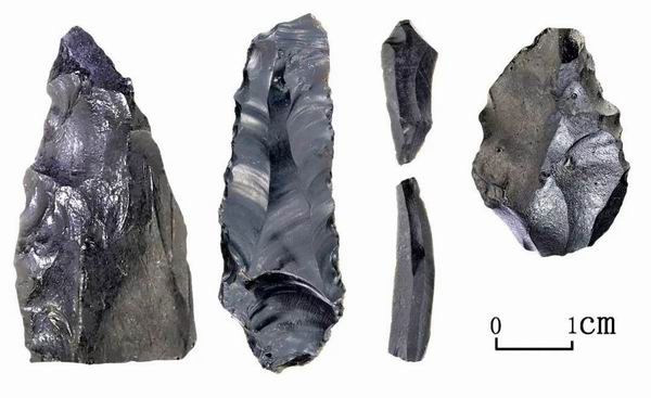 另外,在距博高利亚湖遗址西北约700米发现一处小型石器制作场,地表6平方米范围内分布石制品300余件,有石叶石核、典型石叶、勒瓦娄哇尖状器、大量石片、断块等。