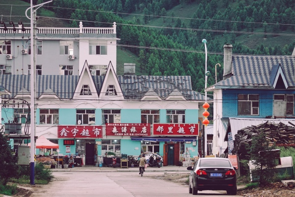 我们来到莫尔道嘎城区,一座森林覆盖中的小镇。因为旅游业的关系,它并未像其他林区小镇那样,呈现出严重的衰败迹象。相反,你能看到黄焖鸡米饭和重庆小面,色彩异常浓艳的酒店大楼,甚至还有咖啡厅(厅显得比馆更有时代特色)。