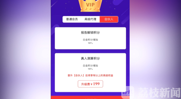 然而,网络看相的背后,不仅仅是朋友圈的互动,还有隐藏着极深的分销体系。在“推广渠道”一栏,旁边赫然写着“躺赚”两个红字。支付99元就可以升级为代理,支付199元就可以成为合伙人。通过一级级的分销,让成千上万的代理商,甚至是普通用户,为小程序开发商“打工”,把小程序扩散到网络的角角落落。