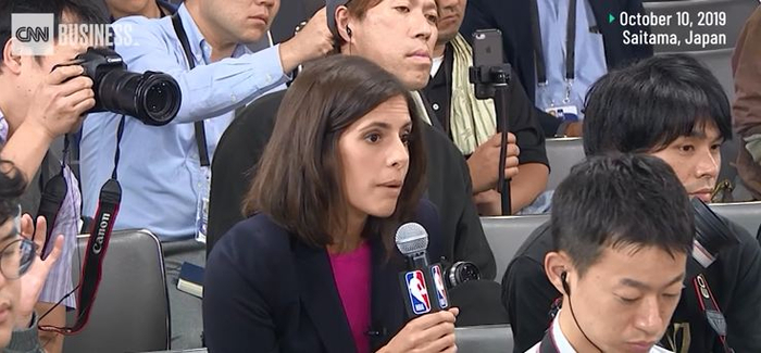 据美国有线电视新闻网(CNN)当地时间10月10日报道,当天在东京举行的NBA赛后新闻发布会上,CNN记者克里斯蒂娜·麦克法兰(Christina Macfarlane)试图就NBA在华引发的舆论事件向火箭队当家球星詹姆斯·哈登,以及拉塞尔·威斯布鲁克提问,随后被火箭队的媒体负责人以“与篮球无关”叫停。