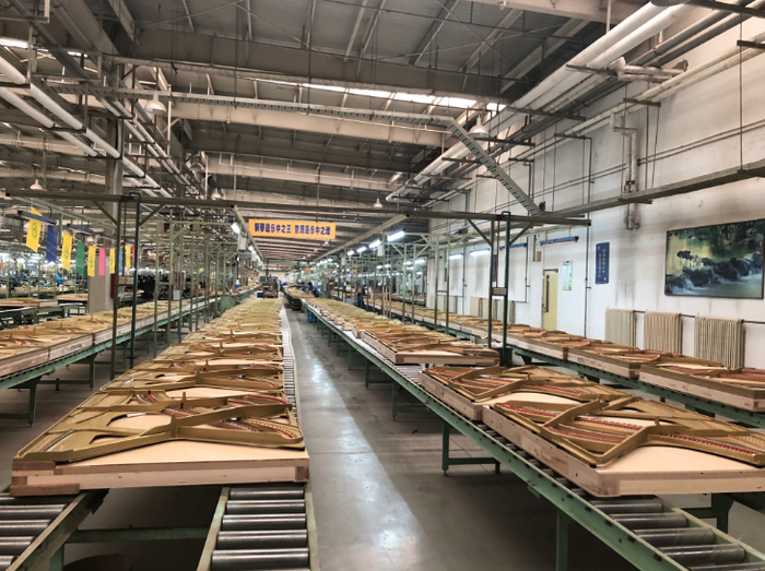 再往里走,外壳制造车间却空空如也。“今年,外壳制造的工序如喷漆、打磨已经外迁到河北省肃宁了。”星海钢琴集团公司负责金大钧介绍,其他车间明年也将外迁,在肃宁形成练习琴的生产全产业链。