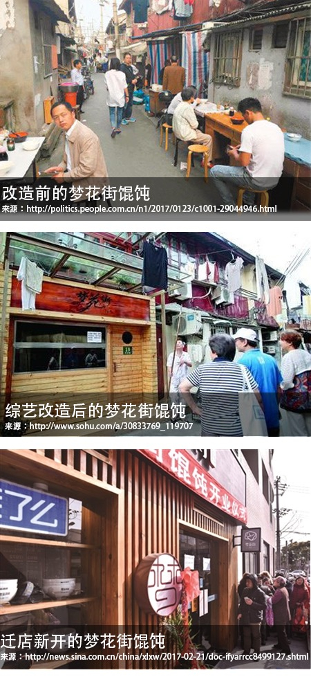 然而,政府监管与执法部门的强制关停,并不能清除不合规的里弄小型餐饮店。很多里弄餐饮的无证经营者为了谋生,常常处于与执法部门的“拉锯战”中,屡关屡开。政府也试图帮助里弄餐饮寻找价值,在街边找了干净的小店,让里弄餐饮继续开下去。比如,2017年,在政府牵线下,梦花街馄饨与阿大葱油饼的迁店重开,里弄中的小微餐饮可以合法经营,但其外迁后是否还有原来的氛围、人气与活力仍然值得关注。