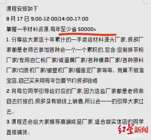 她告诉红星新闻记者,她动心的点在于,宣传中“花10万也学不到的课程”“老师十年的经验积累和真正一手源头厂家资源”“每年至少省50000+”“月入3万”等字眼。