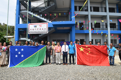 所中华学校董事会主席李忠圆致辞,祝贺中华人民共和国成立70周年和中所建交,表示所华侨华人为祖国的强大感到无比自豪。李感谢中国驻巴新使馆长期以来为所中华学校建设发展提供的大力支持,期待中所持续深化教育交流,惠及更多所学生。