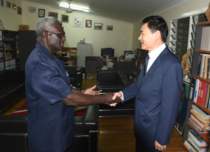据中国驻巴布亚新几内亚大使馆官网10月3日消息:2019年9月29日至10月2日,驻巴布亚新几内亚大使薛冰访问所罗门群岛。