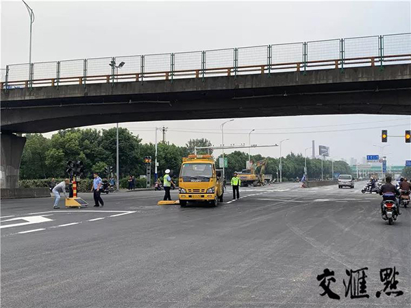 无锡交通建设工程集团有限公司路面分公司经理顾洪峰告诉交汇点记者,他们一行40多人施工团队是11日晚8点进驻现场的,同时还调集了推土机、压路机、运输车、洒水车等30多台套机械施工。到今日凌晨4点左右,路面沥青基本铺设完毕。随后,施工人员又在路面上重新勾划了交通标志线。早高峰前,路面具备了通行恢复条件。