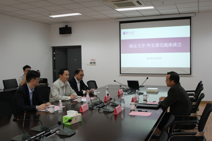 10月10日上午,我校校友、外交部外管司副司长唐松根一行赴仙林校区开展外交部2020届毕业生考录宣讲。宣讲会前,南京大学党委常委、副校长邹亚军会见外交部宣讲组一行,学生就业指导中心负责人等共同参会。