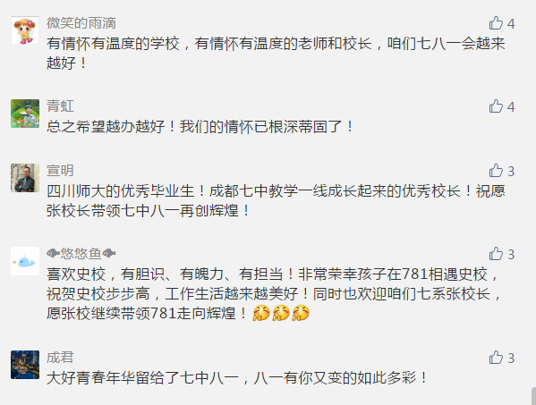 2019年8月,七八一官方微信号上,众人表达了对史玉川的祝福与不舍(图据七中八一官方)