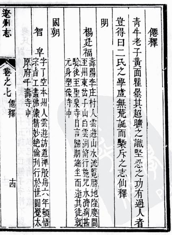 雍正重修《辽州志》卷七“仙释·国朝”条