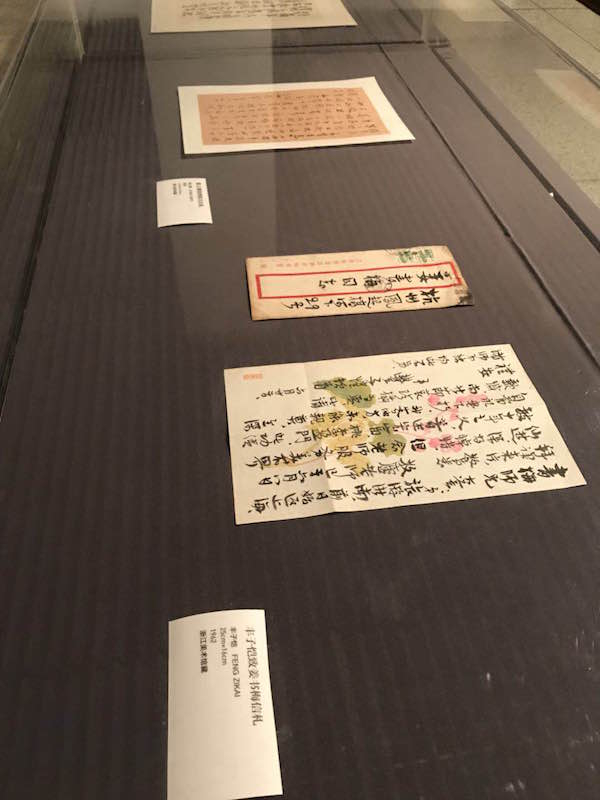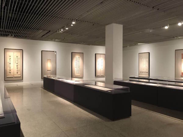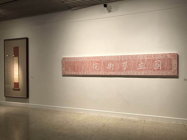 展览现场,右为蔡元培《国立艺术院碑朱墨拓片》