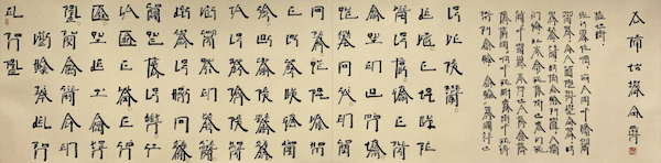 潘天寿是我国著名的中国画家和艺术教育家,毕业于浙江第一师范学校,书画得李叔同、吴昌硕等名家指导。其书法博取众家之长,于钟鼎、石鼓、”二爨”以及明代、倪元璐,近代沈曾植、吴昌硕皆有深入而独到之研究,故自成奇崛、险峻、朴茂之风格。