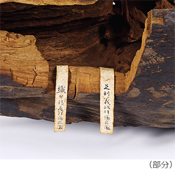 这是以“蘭奢待”之名闻名天下的名香。在这一雅名中,隐含有“东”、“大”、“寺”三字。足利义政、织田信长等人都渴求这种香木,曾切取小块,近代的明治天皇也曾切取部分。黄熟香为银杏科的姜属植物树脂形成的沉香,至今仍散发芬芳。