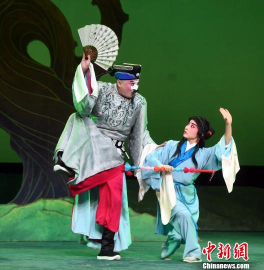 中新网福州10月13日电 (记者 刘可耕)作为福建京剧院举办的庆祝新中国成立70周年暨福建京剧院建院70周年系列展演活动,湖北省京剧院两度中国戏剧“梅花奖”得主朱世慧携湖北省京剧院一级演员谈元、福建京剧院二级演员张飞飞等两位爱徒,12日晚在福州同台精彩演绎京剧《徐九经升官记》。