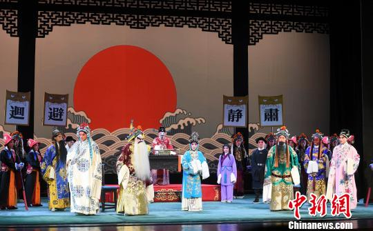 湖北省京剧院一级演员谈元(图中)剧中饰演徐九经。 记者刘可耕 摄