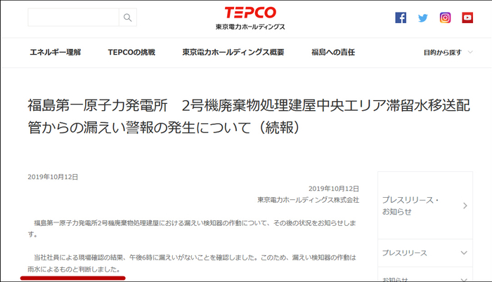 此外,12日下午,福岛核电站2号机废弃物处理屋中央区滞留水移送配管,一度发出泄漏警报,不过东京电力经检查后澄清,泄露警报是由雨水引发的,并没有发生泄漏事故。