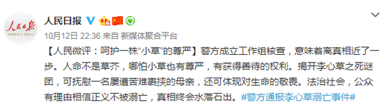 警方成立工作组核查,意味着离真相近了一步。人命不是草芥,哪怕小草也有尊严,有获得善待的权利。揭开李心草之死谜团,可抚慰一名屡遭苦难裹挟的母亲,还可体现对生命的敬畏。法治社会,公众有理由相信正义不被溺亡,真相终会水落石出。