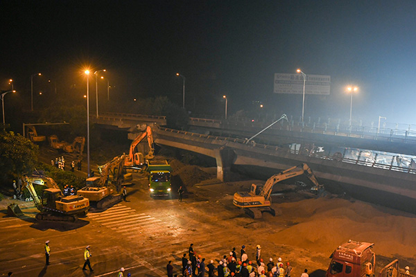 如果公路运输市场还是维持目前这样的格局,那么货车超载问题很难得到解决。图为2019年10月11日,无锡锡港路上跨桥桥面侧翻事故救援现场。 新华社记者 李博 摄