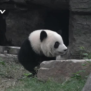 【解说】“萌宝”、“萌玉”是2018年5月23日在四川出生的双胞胎姐妹,母亲是来自北京动物园的大熊猫“萌萌”,父亲则是四川的大熊猫“美兰”。2019年9月10日,北京动物园将一岁有余的它们从四川接回北京,在接受为期一个月的检疫期后,两姐妹终于同游客见面。