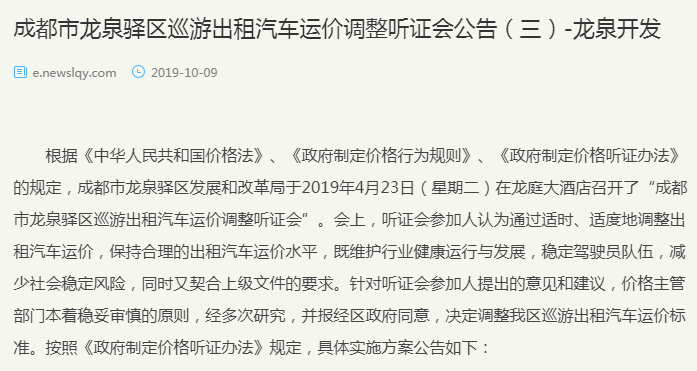 ▎成都市龙泉驿区巡游出租汽车运价调整方案