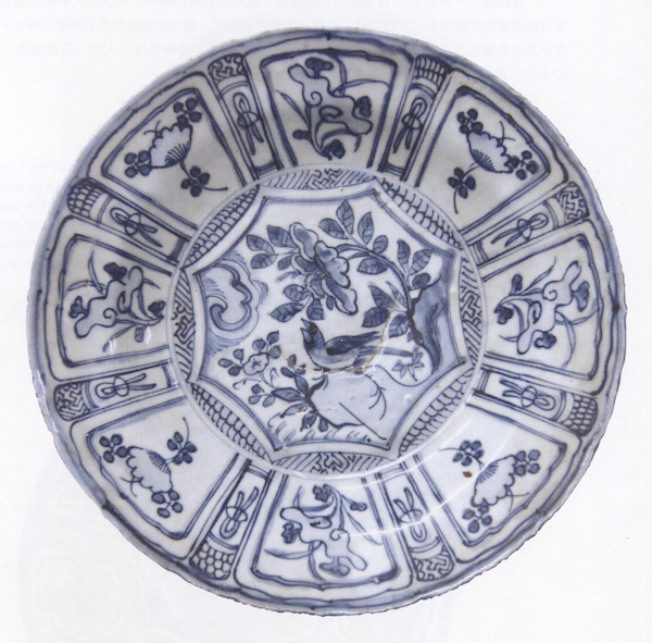 青花八开光花鸟纹盘 明(1368—1644)江西省博物馆藏