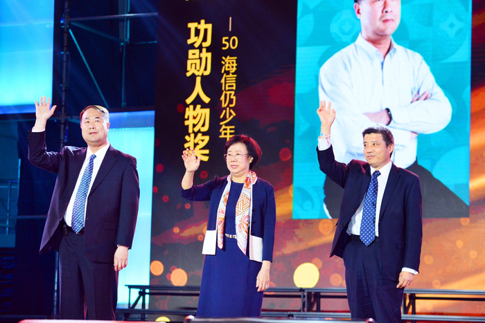 此次庆典大会上,海信集团总裁贾少谦宣读了新一批海信“功勋人物”荣誉获得者——于淑珉、费立成、高玉岭。周厚健董事长为三位功勋人物颁授勋章和荣誉称号。同时,受到表彰的还有三十位卓越贡献奖获得者。