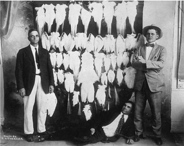 据历史学家罗宾·道蒂(Robin Doughty)所言,在贸易初期“羽毛商人按根购买羽毛,然而,随着女帽的流行,尤其是在巴黎,他们变为按斤购买,批量购买成了普遍规则”。考虑到羽毛的重量,这意味着一个惊人的数字:以牟利为目的的猎人要杀死 800 到 1000 只雪鹭才能得到一公斤羽毛。