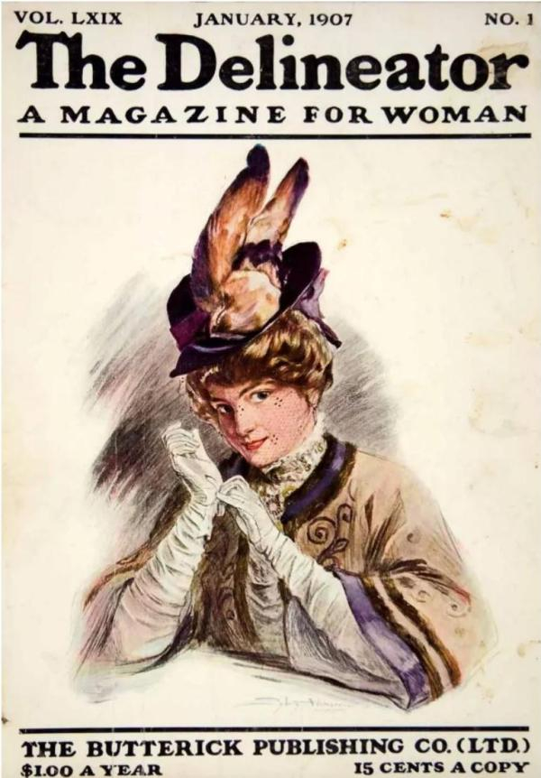 封面上还有为拉林斯(Rallings)夫人位于纽约第五大道的女帽店及诺克斯帽子所做的广告,广告语分别是:“拥有琳琅满目的优雅巴黎女帽”和“骑马戴的帽子—散步戴的帽子—开车戴的帽子—看戏戴的帽子—会客戴的帽子—婚礼戴的帽子—各种社交场合戴的帽子”。另一本畅销的美国时尚杂志《描画者》(The Delineator)在 1898 年1 月号上公布了最新的女帽流行趋势:“对于日常散步所戴的帽子而言,坚挺的羽翼最为时髦……对于软帽及带檐的帽子而言,装饰着闪光亮片的羽翼、白鹭羽饰和中间露出一支天堂鸟羽饰的羽毛绒球都是不错的选择。”