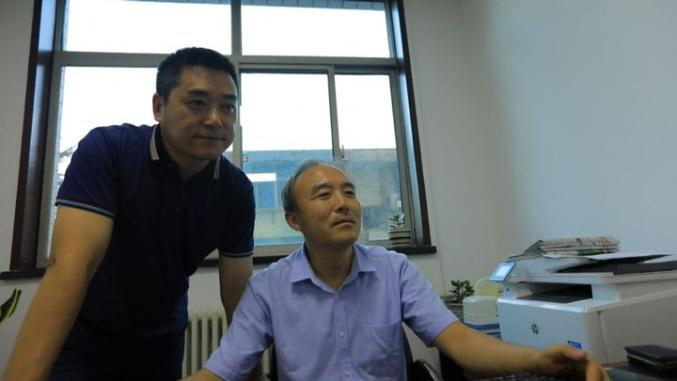 尚小琦和薛贵东在观看港珠澳大桥通车新闻