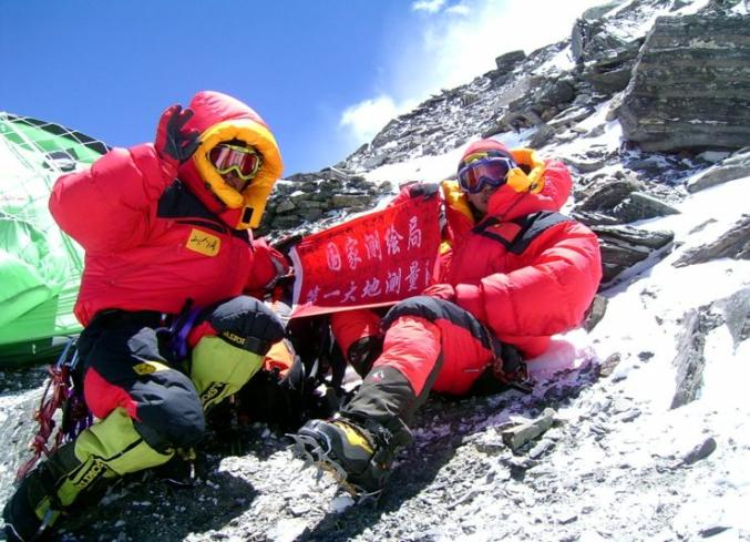 2005年5月22日11时08分,登山测量队员成功登上了珠穆朗玛峰,将觇标牢牢树立在珠峰的最高处。经过科学严密的测量和计算,最终得出了珠穆朗玛峰的新高程为海拔8844.43米。