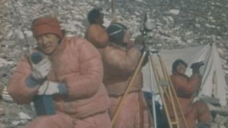 登山队员和测绘队员历经艰难险阻,四退四进。1975年的5月27号下午两点半,登山队员成功登上了珠穆朗玛峰,将觇标插上峰顶,测绘队员们争分夺秒进行测量。