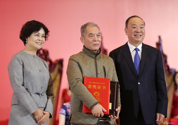 四川省作协主席阿来为徐怀中颁奖