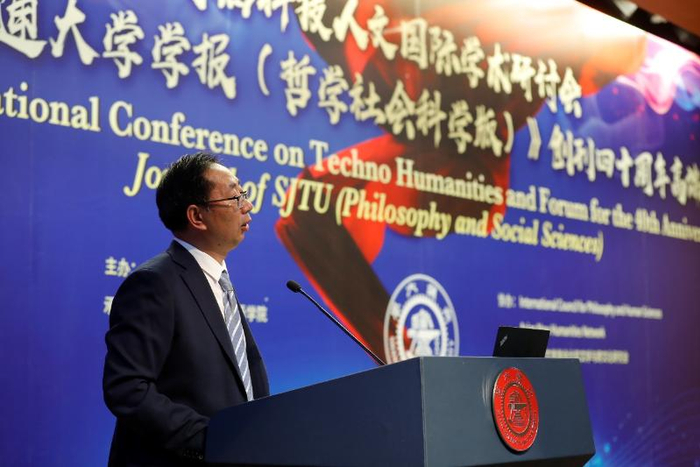 2019年10月10日至12日,“首届科技人文国际学术研讨会暨《上海交通大学学报》(哲学社会科学版)创刊四十周年高端论坛”在上海交通大学徐汇校区召开,会议由上海交通大学协同联合国教科文组织哲学与人文国际理事会(International Council For Philosophy and Human Sciences,UNESCO)等单位共同举办,上海交通大学外国语学院、期刊中心等单位承办。上海交通大学校长、党委副书记、中国工程院院士林忠钦出席开幕式并致辞,中国社科院前院长、中国社会科学杂志总编张江,上海交通大学党委副书记顾锋,联合国教科文组织国际哲学与人文科学理事会主席朝戈金,国际哲学与人文理事会秘书长路易斯·欧斯特贝克,亚洲新人文网联主席、香港中文大学熊秉真,欧洲宗教研究会主席蒂姆·詹森,香港恒生大学校长何顺文等来自国内外的院士、国内外重要刊物主编、世界大学评估专家、著名人文学者参加了本次跨学科研究学术盛会。大会由上海交通大学外国语学院副院长、《上海交通大学学报(哲学社会科学版)》主编彭青龙主持。