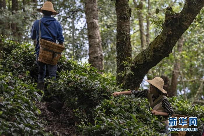 茶农在怒江傈僳族自治州福贡县匹河乡老姆登村生态茶山采茶(9月16日摄) 新华社记者 江文耀摄