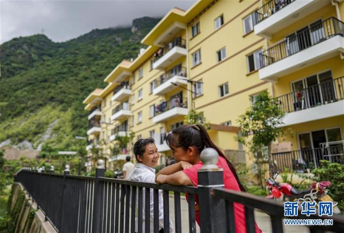 搬迁至怒江傈僳族自治州泸水市大龙塘安置点的居民在家门前聊天(9月15日摄) 新华社记者 江文耀摄