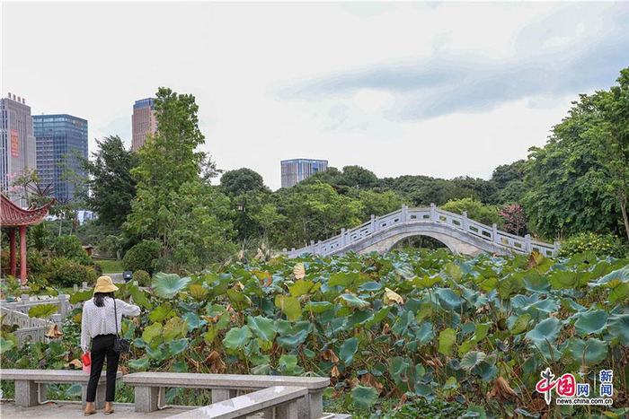 2019年10月14日,福建莆田,绶溪公园。游人拍摄荷塘景色。中国网记者 栗卫斌 摄
