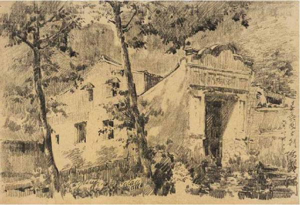 陈盛铎,《灵岩兴国古刹》,1960年8月,纸本素描