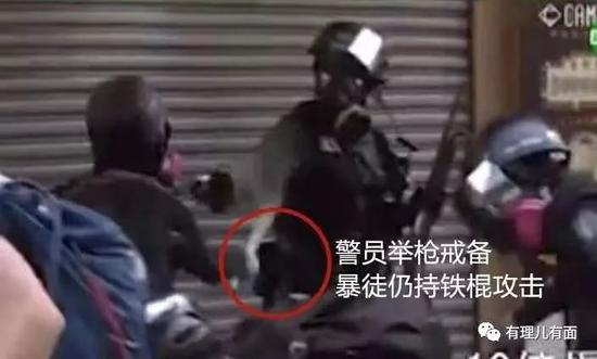据香港媒体视频报道显示:10月1日16时许,多名暴徒持械疯狂围攻一位落单警员。另一位警员为解救同伴拔枪戒备并警告,同样遭到暴徒持铁棍攻击,警员被迫开枪,将该名暴徒击伤。