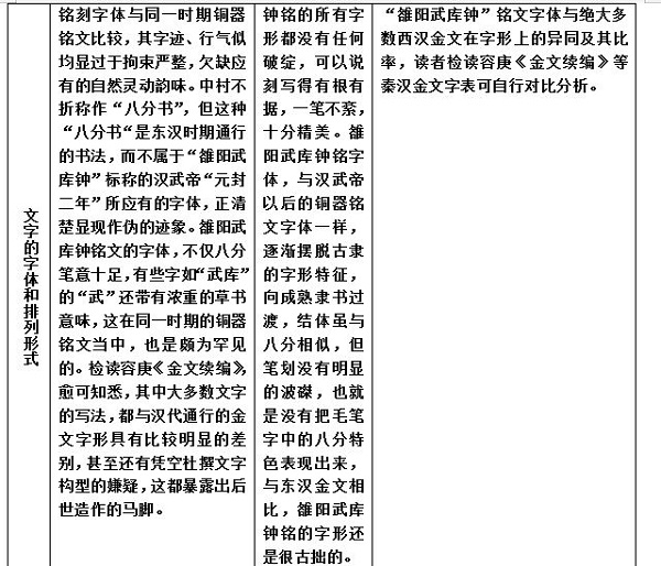 这种能够落到实处的普遍性、规律性状况,就是我辨识“雒阳武库钟”铭文的一般基础,而且至今我还坚持立足于这样基础之上来看待“雒阳武库钟”铭文的真伪。我觉得这不仅是一个学者应有的态度,更是一个历史学者必须要坚守的立足点,不这样就无以从事科学的历史研究;甚至一个优秀的古董商人也需要明白这一点。