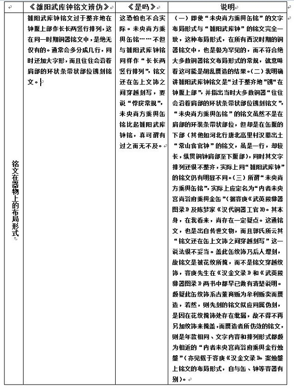 由于在这一点上我同《是吗》的作者具有共同的看法,所以在判别“雒阳武库钟”铭文真伪的时候,自己在主观上,还是小心翼翼地想尽量避免蹈入先入之见的窠臼的。