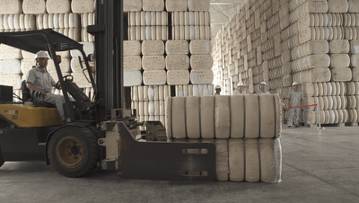 今天,我们不仅吃得饱,还能穿得暖,背后少不了“大国棉仓”。看,仓内棉包整齐堆码,近9米高的“棉山”展现在眼前,棉包用垫石与地面隔离防潮,温(湿)度计实时显示仓内温度和湿度。