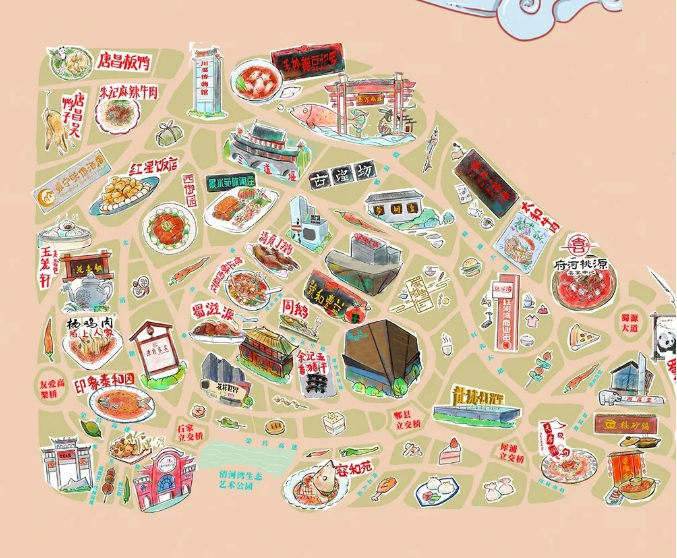 游客们不仅可以在美食节现场“逛吃”,还可以通过生动形象的美食地图,“打卡”经典、美味、具有代表性的郫都美食。不仅可以找到“吃郫”的去处,也能发现夜游郫都的点位。