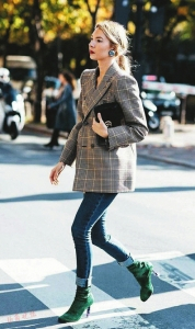 当然,如果你是一位自带气场的女强人,那么也可以选择格纹上衣与格纹裤的整套搭配。如果觉着这样的造型有些凌厉,可以把格纹裤换成格纹半裙,给人温和帅气的感觉。